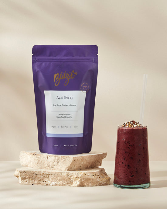 IngredientsAcai Berry, Banana, Blueberries -Contains caffeine from guarana in the Acai Berry
