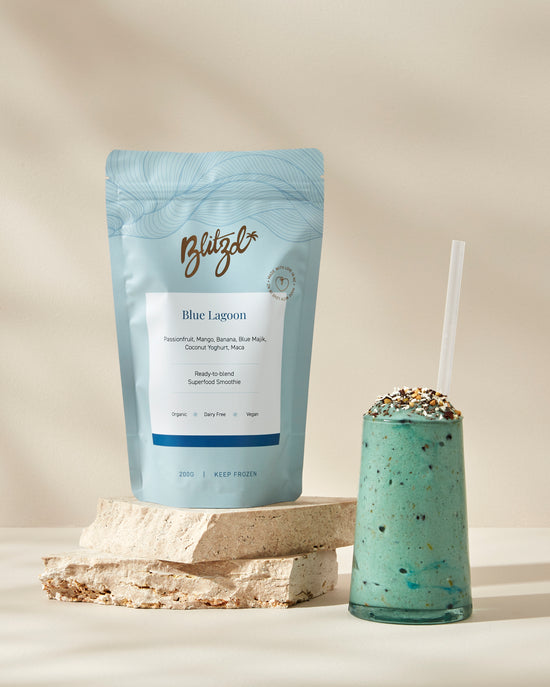 IngredientsMango, Passionfruit, Coconut Yoghurt, Banana, Blue Majik, Maca powder